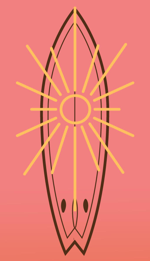 Final pass of the type of surfboard. Rearranged/edited letters to flow better and re-drew surfboard.