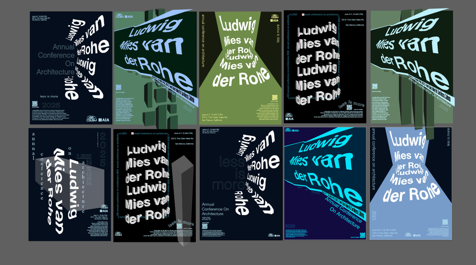 Finalizing some compositions by further developing the colors, type, and adding necessary information.