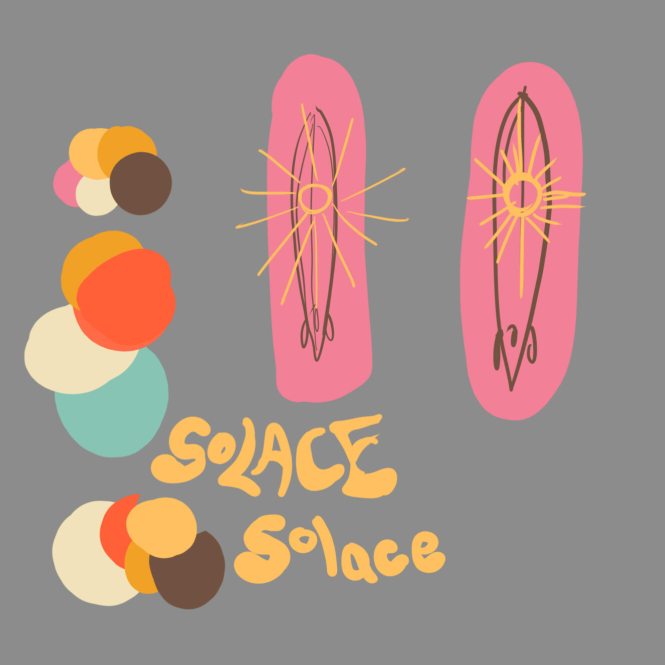 Variations of hand-drawn stickers that decorate outside of packaging.