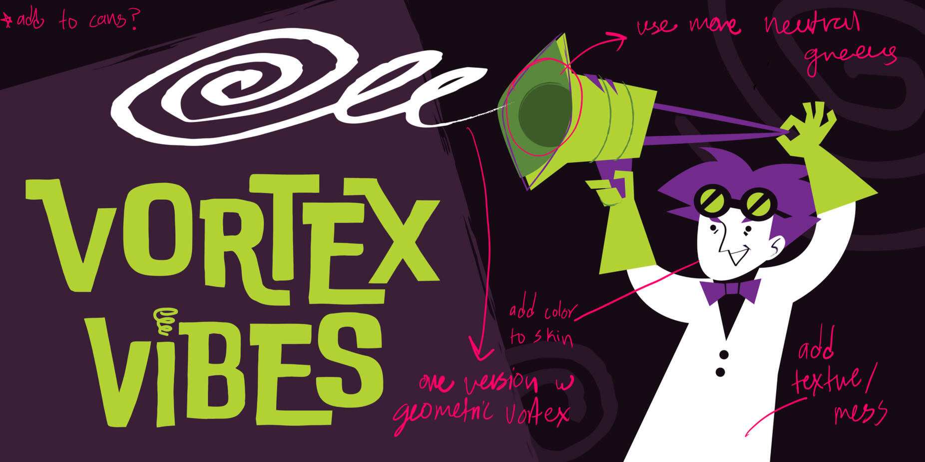 Initial sketch of vortexes and the little guy who would become the mascot for the exhibit.