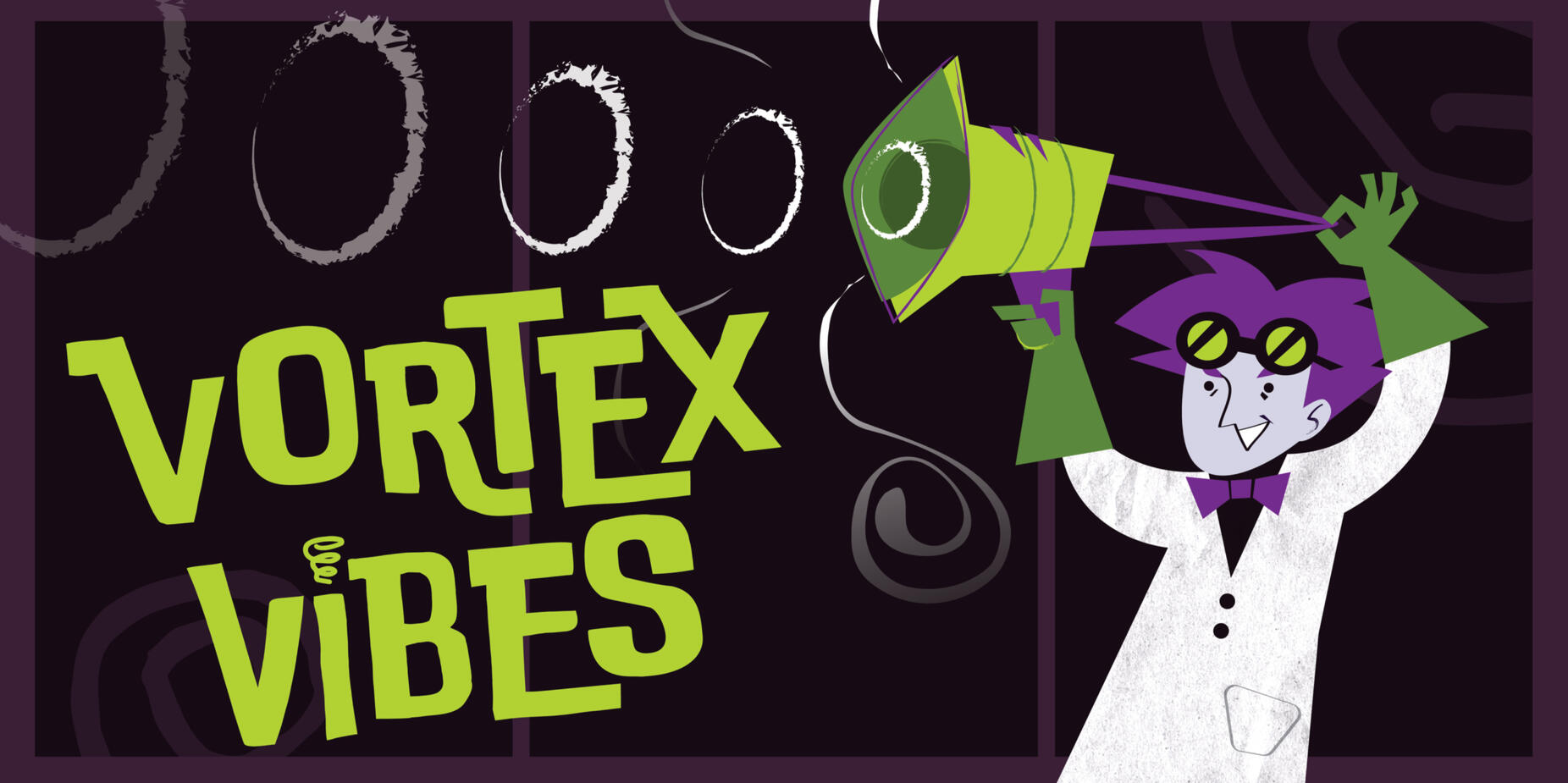 This was the main exhibit I was assigned. It was a showcase of whirlpools, fountains, and vortex smoke guns. The goal was to come up with a fun way to appeal and to communicate with our audience. Banners, stickers, stamps, and other decorations are produced with these designs.