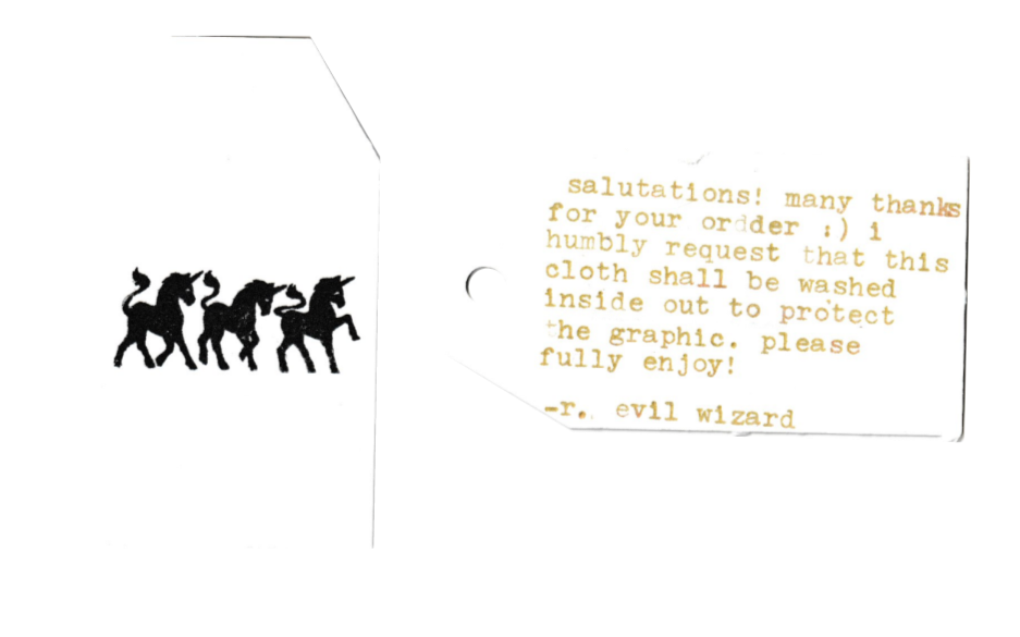 Tags w/ washing instructions (written with my Smith-Corona Galaxie Deluxe).